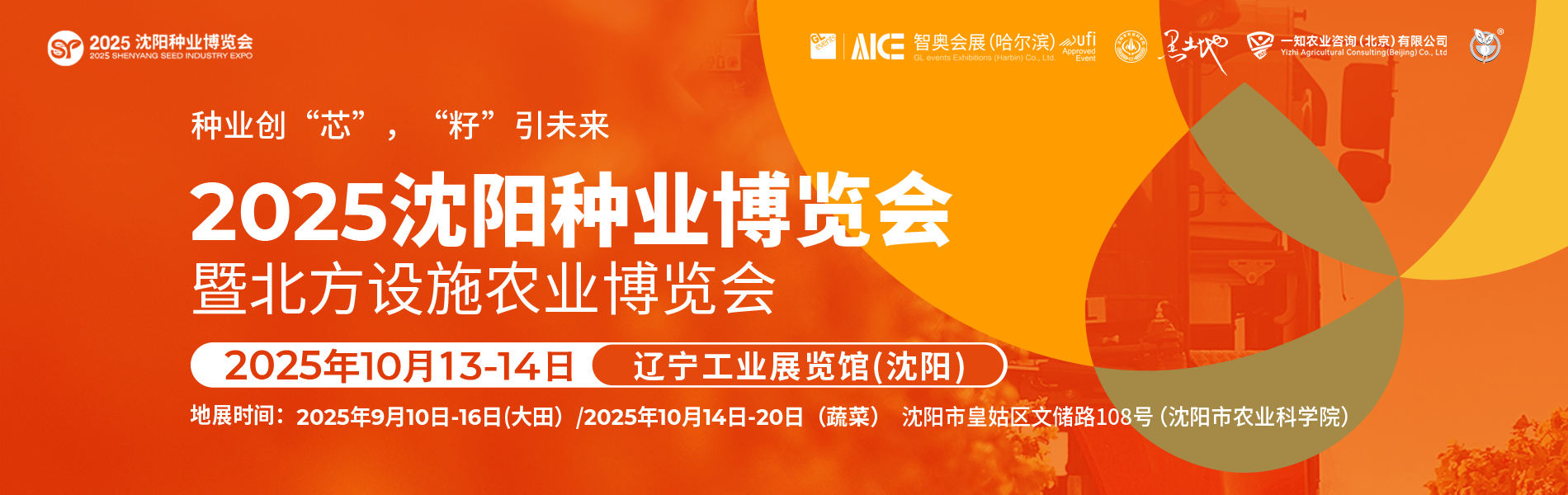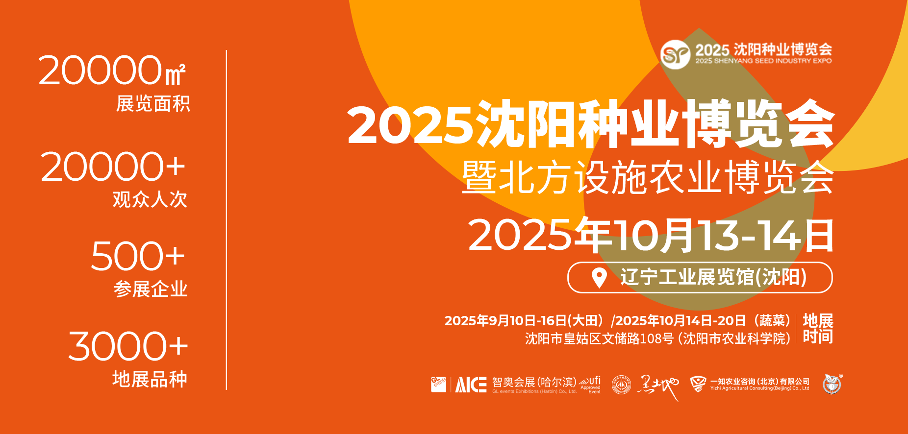 推荐指数:⭐⭐⭐⭐⭐ 2025沈阳种业博览会暨北方设施农业博览会将于2025年10月13日至14日在沈阳盛大召开,同期举办蔬菜田间展示会,另在9月10日至16日举办大田田间展示会。本届展会以“种业创‘芯’·‘籽’引未来”为主题,汇聚国内外种业、设施农业、农业科技等领域的顶尖企业、科研机构和行业专家,致力于为科研单位、企业、经销商和种植户搭建一个高效、专业的交流合作平台。 本次大会采用展馆+地展+高峰论坛联动模式,实现了展览形式的多元化与深度融合。聚焦“展示推广平台+成果展示窗口+企商对接枢纽”三位一体核心功能,依托沈阳区位优势,覆盖北方地区以及全国专业受众,打造国家种业振兴的北方标杆平台,赋能行业增长新引擎。 2025沈阳种业博览会 新品汇聚 万商云集 大咖助阵 强势突围 2025年10月13-14日 相约辽宁工业展览馆 2025年9月10日-16日(大田地展) 2025年10月14日-20日(蔬菜地展) 相约沈阳市农业科学院 共话行业新未来